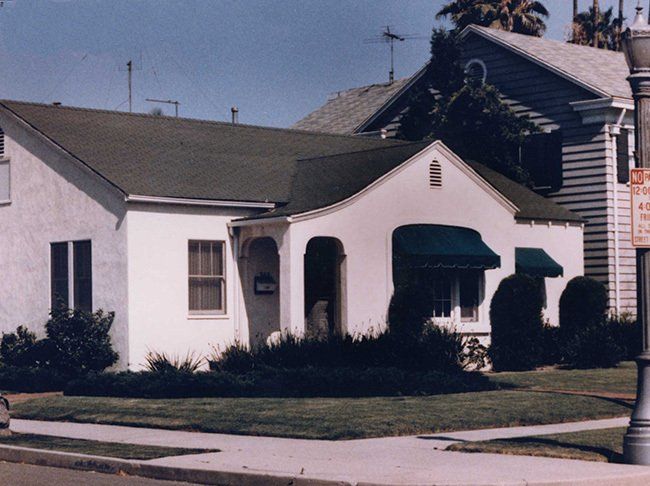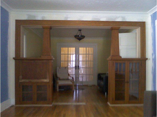 Corner bench seating with open storage at front and two book cases with closed storage below - Fullerton, CA